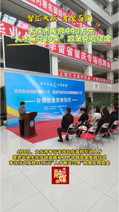 大庆暖心发放443万元“人才振兴20条”政策资金