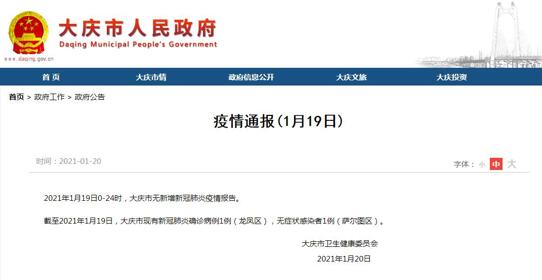 1月19日黑龙江新增确诊病例16例 大庆市无新增确诊病例