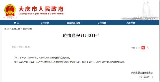 1月31日黑龙江省新增确诊病例22例,大庆市无新增疫情报告
