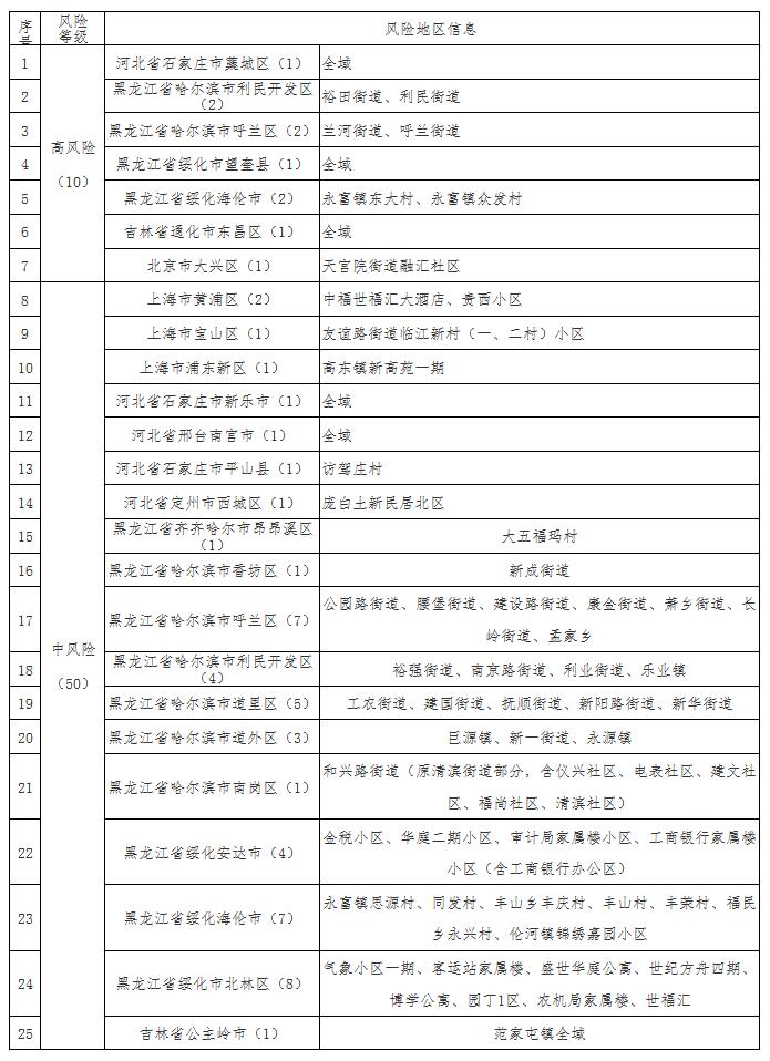 截至2021年2月5日14时,全国共有新冠肺炎疫情高风险地区10个,中风险地区50个。具体情况如下: