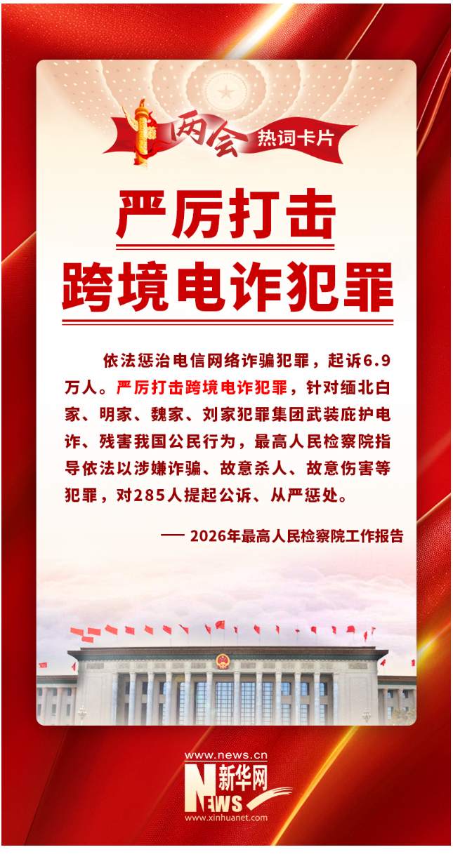 最高人民检察院法律政策研究室主任、工作报告起草组负责人杨剑波:电诈犯罪无孔不入,人民群众深恶痛绝。2025年,检察机关协同有关部门共起诉电诈犯罪6.9万人,并对缅北“四大家族”285人提起公诉。目前,缅北“四大家族”犯罪集团案已全部进入司法程序,缅北明家、白家犯罪集团16人被判处死刑立即执行。