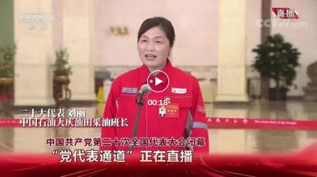 22日,中国共产党第二十次全国代表大会闭幕会后,“党代表通道”再次开启。我省党代表刘丽走上通道,与中外媒体面对面交流。她身穿红色工作装,代表新时代石油工人立下誓言:多为祖国献石油,为保障国家能源安全作贡献。