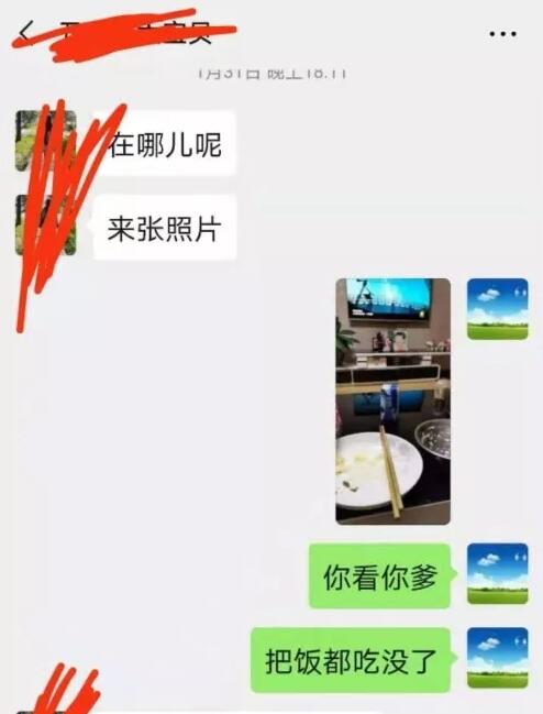 为了能让女儿相信自己说的话,赵鸿雁让丈夫赶紧把吃光饭菜的盘子和碗照一下发给她,然后她发给女儿:“你看你爹,把饭都吃没了,这些天他巨能吃,开春能卖了。”