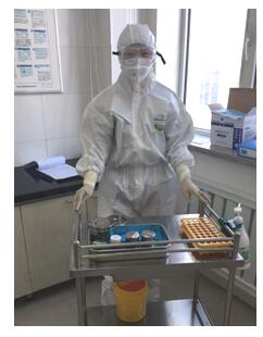 自疫情暴发以来,她身先士卒,始终站在危险的最前线。她瘦弱的身体内,承载着一颗强大的内心。穿着笨重的隔离衣、戴着N95口罩和防护眼镜,每天都要连续工作要10个小时以上。当一天的工作结束后,脱下隔离衣、摘下口罩和防护镜时,她身上衣服已经湿透,脸上出现道道印痕,为了减少上厕所,甚至一天都不喝水。这对于她而言“为了工作,在这样的情况下,这些都算不了什么。”