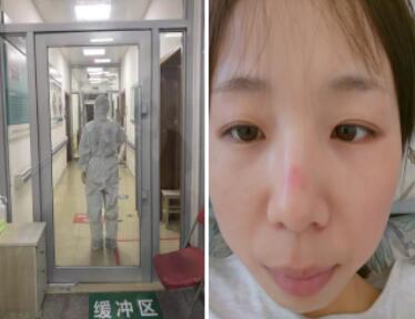 在隔离区里的16个小时里,为了不上厕所,她忍着饥渴,不吃饭,不喝水。身体被厚重的隔离服包裹着,犹如洗桑拿,汗水顺着防护镜一直往下淌。王雪不眠不休,等都忙完了,脱下隔离衣,面容外露,鼻梁上的痕迹立刻显现出来,脸上的痕迹久久消不下去,耳朵也被口罩勒的破了皮。你的勇敢、抗危机、攻难关、势如破竹,你的忠诚、遵医德、守宗旨、不辱使命。