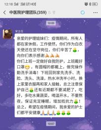 作为护理部主任,她时刻关心关怀护理人员,利用全院护理微信群,提醒大家加强营养,劳逸结合,做好自我防护,保持愉快心态。每日关心慰问预检分诊、发热门诊值班护士,了解她们的身体状况。她的关怀备至深深感染着每一名护理人员,使得大庆市中医医院护理团队在疫情面前始终上下一心,团结向前。