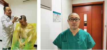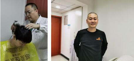 共产党员、甲乳血管外科医生郭青鑫和医生肖宁,接到支援通知时,他们就知道会有一场硬仗要打,很长时间不能回家,把洗漱用品一股脑都装上了。为了减少污染机会,避免交叉感染,他俩决定把头发剃了。男值班室里,宋文卿临时成了理发师,他就地取材,拿两块塑料袋,挖两窟窿给他俩套上,不一会儿就剃光了两名医生的满头黑发。剃的时候还能有说有笑,可看着两个光秃秃的脑袋,宋主任却哽咽了。他俩笑着安慰主任说:“早都想换个头型了,没想到一步到位了。”