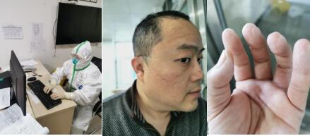 脱下隔离服 宋文卿的脸上的勒痕和手上的白泡