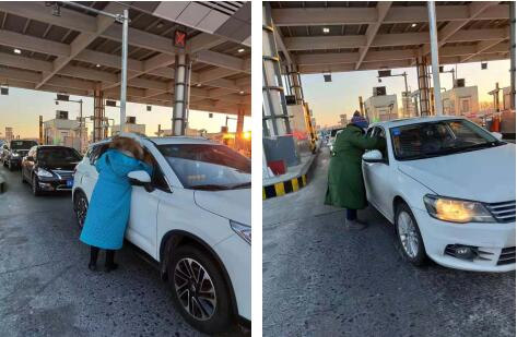 零下二十几度,站在寒风凛冽的收费口,尽管大家都穿上了厚厚的羽绒服,但是不过十几分钟的功夫,白衣天使们的衣服被寒风打透了,握笔的手冻僵了,脸上泛起了青紫色,脚趾头冻得发麻没有了知觉,帽子口罩、眼睫毛、眉毛挂满了白霜,在寒冷空旷的高速路口没有卫生间,即使被冻的瑟瑟发抖,白衣天使们却连口热水都不敢喝。她们咬着牙、搓着手、跺着脚在寒风中释放爱的温度,赢得过往车辆里行人的点赞,参加过非典战斗的老护士初春梅一直鼓励大家,只有守护好这个大家,小家才能平安。
