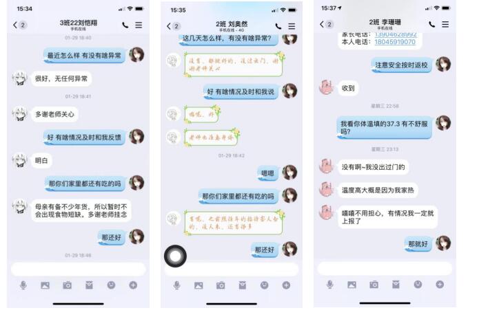 正值学生寒假期间,建立“学院-辅导员-学生”三级“网络摸排体系”,辅导员每天通过微信、QQ、电话、短信等多种媒介与学生保持联系,了解学生动态情况,通过辅导猫平台每天统计和汇报学生健康状况,尤其对途经或家住在武汉和湖北的学生更加密切联系、关注,精准掌握学生的健康动态。