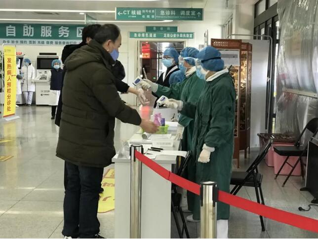 他们每天都要重复几百次的询问,测量;对每一位前来就诊的患者详细问诊是否发热,是否有相关症状;若有来自疫区或者接触过来自疫区的发热患者,指导患者及陪同人正确佩戴口罩,同时联系发热门诊,由专职人员规范防护尽快将患者安全护送至发热门诊,进行下一步检查。工作中,每一位预检分诊人员工作认真负责,严格执行预检分诊,最大限度地保障全院医护人员及患者的健康安全。