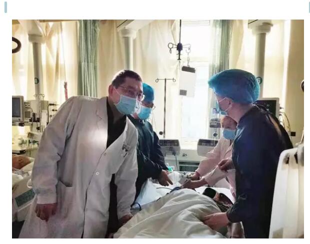 在这个疫情突发的特殊时期,一名患者在做CT时突发意识不清,CT磁共振影像科护士和家属紧急将患者送到NICU, 神经内科副主任周勇正要进NICU查看住院患者,医生王迪刚好看完患者要出NICU。两人见状,马上和护士一起将患者抬上诊床。