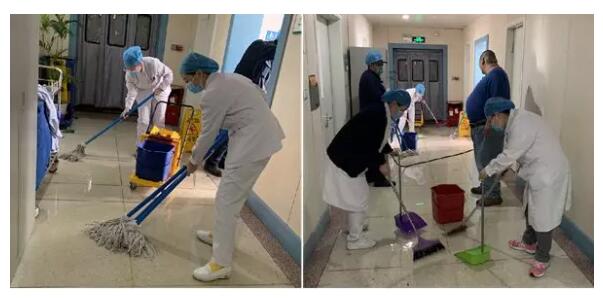 因疫情需要,老年病房暂时调整到住院一部一楼病房。中午12时,护士长刘思琦突然发现一间病房的卫生间地漏开始返水,屋里、走廊都是脏水。刘思琦立即联络管工班维修,当天内科总值班老年病科副主任王洪静、医生陈东伟、护士毕远思、王希玲纷纷拿起扫把和拖布清理地面。患者家属也自发拿起工具主动加入到清理队伍,拖布拧不干净,一位患者家属不顾脏臭,帮着大家拧。护士长及时摆放防滑警示牌,防止医患滑倒。在管工班和全体医护及家属的齐心协力下,短短半个小时的时间,便恢复了病区环境。在抗击疫情的特殊时期,和谐的医患关系让大家的心更加凝聚,只要大家拧成一股劲,我们终将会获得胜利。