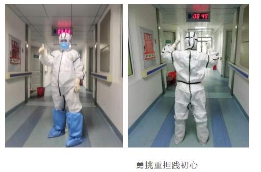 到了市第二医院,这个85后的年轻医生毫不逊色于那些70后的骨干医生。医院党委在抗议前线组建了临时党小组,作为一名党员,仇会会默默地在心理重温了入党誓词,定要在抗击疫情中发挥先锋模范作用,展现巾帼风采。经过紧张有序的培训,直接奋战一线。作为第一批进入隔离病房的她们,几乎没有经验可以借鉴和参考,仇会会凭借自己的重症工作经验,迅速开展工作,与同来支援其他医院的医护人员分享重症治疗和技术操作要点,亲自示范为新冠重症患者有效吸痰、使用呼吸机、采集动脉血气、下胃管、尿管、应用气垫床,为周身插满管路的患者翻身等,并且冒着高风险亲自为重症患者进行深静脉穿刺插管。刚刚两天高强度的工作导致身体过于疲乏,又不能按时吃饭,本就有低血糖症状的仇会会害怕领导和同事担心她的身体,下班后总是偷偷的含上糖块来克服身体的不适。为了节省医疗物资,方便照护患者,她每天上岗前少喝水、甚至是不喝水,尽最大努力降低防护服的更换频率,闷热的防护内衣服被汗水浸湿了又干,干了又湿,每天工作下来衣服上布满了汗渍。工作中不慎被X光机机头砸中右肩部,软组织挫伤,右臂活动非常受限,穿脱防护服她都忍着强烈的疼痛,没有任何的怨言和丝毫的退却,贴上止痛膏她仍然坚持工作。