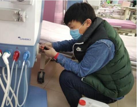 设备运行科刘德宇,一名95后的退役军人,他始终牢记军人的天职,不拒危险,奋勇向前。大年初二就回到岗位上,为了方便工作也能确保第一时间服务于一线,也为了保护家人安全,避免交叉感染,他至今未回过家,一直住在科室里,根本顾不上身体欠佳的父母需要陪伴。无论是拆装停诊病区的空气消毒机,支援改建为定点集中发热医院的市中医院,还是搬移三百多斤的产床到隔离病房,以及进行南北两院的器械维修及维护,和南北两院手术室层流净化机组的初、中效过滤器进行每两天一次的清洁及消毒,为保障一线正常工作,他与同事都默默奋战在一起,从没说过苦和累。不论白天还是黑夜,只要电话铃声一响,立即冲到维修现场,每次完成任务,经常是疲惫不堪。他说:“此次抗击疫情给我指明了日后努力方向,提供了动力的源泉,在这里向我们一线的同志致敬,也给自己加油打气,我们都是最棒的。”