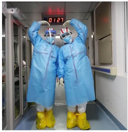 同行而来的几个护理姐妹,只有她最年长,她主动担起责任,每次值班她都会先分配任务,李晓伟总是把最重的患者留给自己护理。明知气管插管应用呼吸机给病人吸痰存在高风险,为了确保病人有效通气,她一次又一次的完成“探雷”行动。由于病人管路多,翻身很困难,需要大家配合密切,翻身、叩背、清理二便、妥善固定管路,一系列的操作在密闭的防护服下进行。多层口罩下是她干裂的口唇,由于长时间戴无菌手套,双手出现严重湿疹,并伴有流脓,每次洗手时,手背都会刺痛无比,可她并没有诉苦诉累,悄悄涂抹药膏后继续坚持在一线。