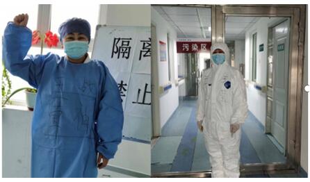 皮肤科护士长 王莹 我是一名护士长、一名党员,疫情当前,哪里需要去哪里。不同的岗位不同的战场,1月31日,我被调到护理部协助工作,那里的工作紧张繁琐,每天忙到晚上是常态。2月8日调到隔离点,负责调整休息的医务人员后勤服务工作,打扫卫生、清洁消毒、更换床单被罩,送餐发放食物以及一切生活照顾。2月10日接到新任务,到ICU病房担任护士长,协调病房内外的联络、护理质控及感染质控工作,这里紧张的工作根本停不下来,不吃也感觉不到饿,不喝也感觉不到渴,不睡觉也感觉不到困。这种节奏的工作,坚持了三天两夜后,我的睡眠出现了紊乱,血压升高,通过下夜班休整了一天,又整装出发接受了新的任务,负责ICU病房、确诊收治病房和发热门诊病房的物资申领协调工作,保证隔离区物品及时供应,做到账物相符。在这次抗击新冠疫情工作中,变换的是岗位,不变的是战胜疫情的决心。对这样的工作我无愿无悔,履行了入党誓词中的那句承诺“随时准备为党和人民牺牲一切!”让党旗飘扬,不辱使命,不负重托,胜利在前方。