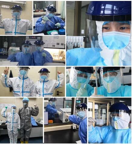 一个月的奋战,一个月的坚守,核酸检测、直面病毒,在新型冠状肺炎病毒肆虐之时,大庆市人民医院中心实验室和检验科抽调8名精兵强将组建新冠病毒核酸检测团队——"猎冠八人组",在于德军主任的带领下日夜奋战在病毒核酸检测的第一线,现已完成新冠病毒核酸检测54批次,样本近3000人份。 新冠病毒核酸检测是一个复杂的过程,做实验只是整个过程中的一个重要部分,为了保证实验室能够安全、顺畅、连续运转。启动前,团队精心设计工作流程,制定SOP文件,反复模拟演练,完善流程,做到人员、试剂、样本、医疗废物进出有序,安全无死角。在实验室,只要有需要,就会在你的眼前出现操作提示。 核酸检测是判断是否感染新冠肺炎的关键依据,每打开一个样本,就如同有患者对着他们咳嗽一次,而每一份样本都要经过核酸提取、配置核酸检测反应体系、扩增检测、结果分析等环节,再加上实验后的消毒、灭菌,最快也要6个小时才能完成整个流程。实验过程是高精细、高紧张、高强度、高消耗的过程,每每从实验室出来,卸掉神秘的防护后都是满脸的压痕与疲惫,不论美女还是帅哥都是一阵咕咚咕咚喝水声。