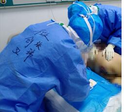 老年患者造口自护能力较低,张玮对他们进行鼓励并讲解造口袋佩戴的知识和操作,简单易懂的话语使老人们增加了信心,更加有效的收集粪便,无造口及造口周围皮肤并发症发生,为老人们减轻了痛苦。 对于病程较长且合并慢性难愈性伤口的危重症患者,压力性损伤的预防和伤口处理也是护理的重点难点之一。上图为张玮和队友正在为一位长期卧床院外带入压力性损伤(褥疮)的患者,进行伤口换药。 进入隔离病房必须穿上厚重的“二级防护”,再经过四个小时紧张、繁重的护理工作,早已筋疲力尽。但张玮在完成正常工作后,总是留下来做她的“私活”。她走进每位需要帮助的伤口(造口)患者身边,为他们做处理。弓腰弯背处理下来至少两个小时,长时间持械僵硬了双手,闷热的防护服湿透了衣裤,病情复杂的患者更是要与医生对接,综合患者的各种信息,制定更理想的护理方案。 值得一提的是,从疫情初始,张玮就坚持在32病区阳光之家微信群里,为患者普及新冠的各种防护知识,解答造口护理过程中的疑难问题。虽然很辛苦,但她总是莞尔一笑说:只要患者需要我,就是体现我的价值,所有的付出都是值得的!