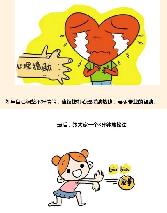 02在应激状态下,有些防控一线的社区工作者会感觉到自己情绪不稳定,容易生气、着急,不被理解时会感到委屈,遇到无能为力之事时甚至会产生负罪感,这其实是应激状态下的正常反应,要理解自己这样的反应,如果很难受,可以暂时停下工作,找一个稍微安静点的地方进行深呼吸,调节、缓解情绪。