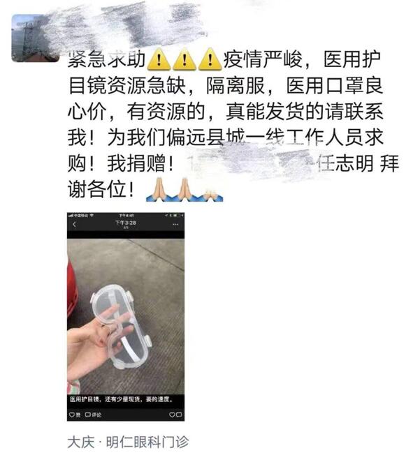 点赞!肇源明仁眼科为医护人员捐赠700副护目镜