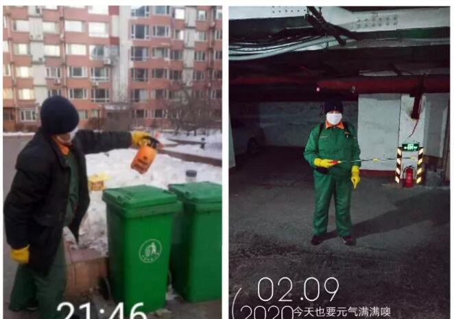 2020年1月23日接到集团公司关于全面防控疫情的通知后,时代丽景保洁员庄连河一直坚守在工作岗位,背着20kg重的药剂喷雾器把每个单元、楼道、电梯轿厢、楼梯扶手、宿舍及公共场所等各个角落用84消毒液进行消毒,不分白天与黑夜为了有效的控制疫情,庄师傅每天住在单位,一直到现在没有回家。家里有年过八旬的父母都不能及时照顾。平时工作中,同事有求必应,从来不推脱。在时代丽景他一干就是近20年,虽然不善言谈,但所有的丽景业主都熟悉他,他也熟悉每位业主。“庄师傅你好!”一句简单的问候,无不体现业主对他多年兢兢业业工作的认可。