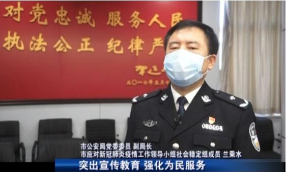 市应对新冠肺炎疫情工作领导小组社会稳定组成员 兰乘水:全市公安机关在认真落实各项疫情防控任务的同时,突出宣传教育, 强化为民服务,通过网络和电话实施“非接触式”办公,有效落实“不见面”服务。