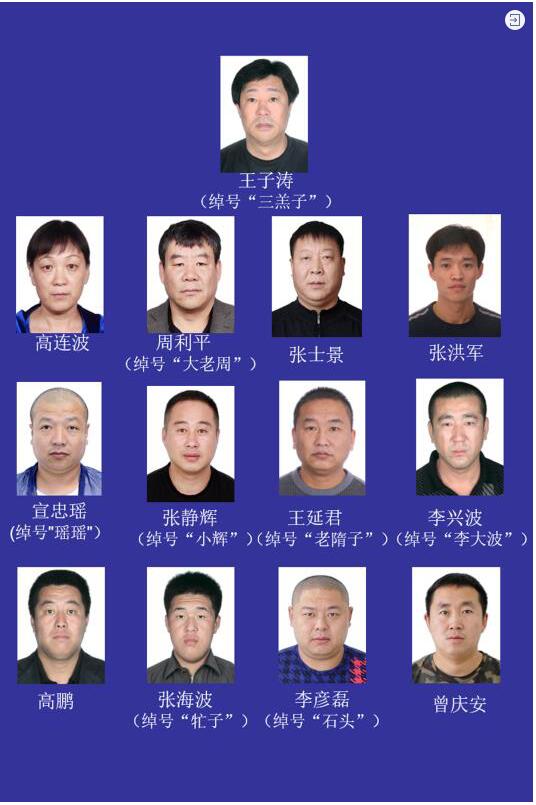现该犯罪团伙主要犯罪嫌疑人王子涛、高连波、周利平、张士景、张洪军、宣忠瑶、张静辉、王延君、李兴波、高鹏等21人已被检察院批准逮捕。