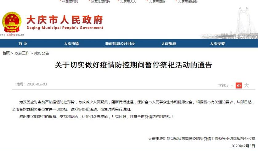 关于切实做好疫情防控期间暂停祭祀活动的通告