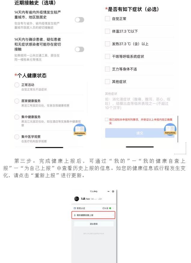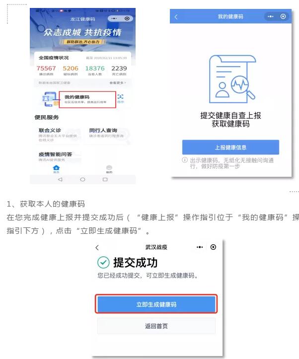 如果您是第一次点击首页上“我的健康码”,请先完成健康上报才能获取健康码(“健康上报操作指引”位于“我的健康码操作指引”下方)。