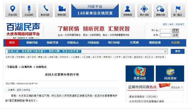 2月7日发布《杜尔伯特蒙古族自治县应对新型冠状病毒感染肺炎疫情指挥部第6号公告》规定,“凡是从大庆市以外地区返回我县人员,必须立即到指挥部指定隔离点接受14天医学观察” 。