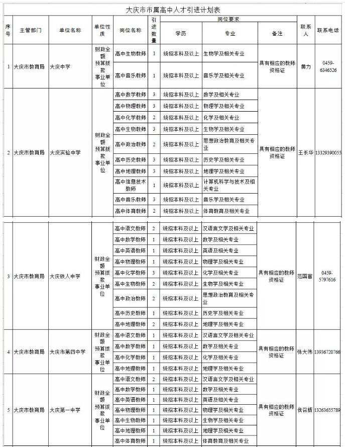经大庆市市属事业单位人才引进工作领导小组研究决定,启动大庆市市属高中人才引进工作。根据实际情况,对大庆市市属高中人才引进有关事宜予以调整,现公告如下: