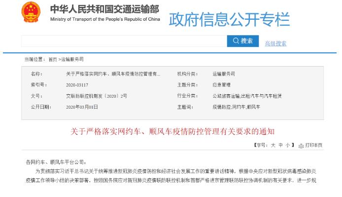 关于严格落实网约车、顺风车疫情防控管理有关要求的通知