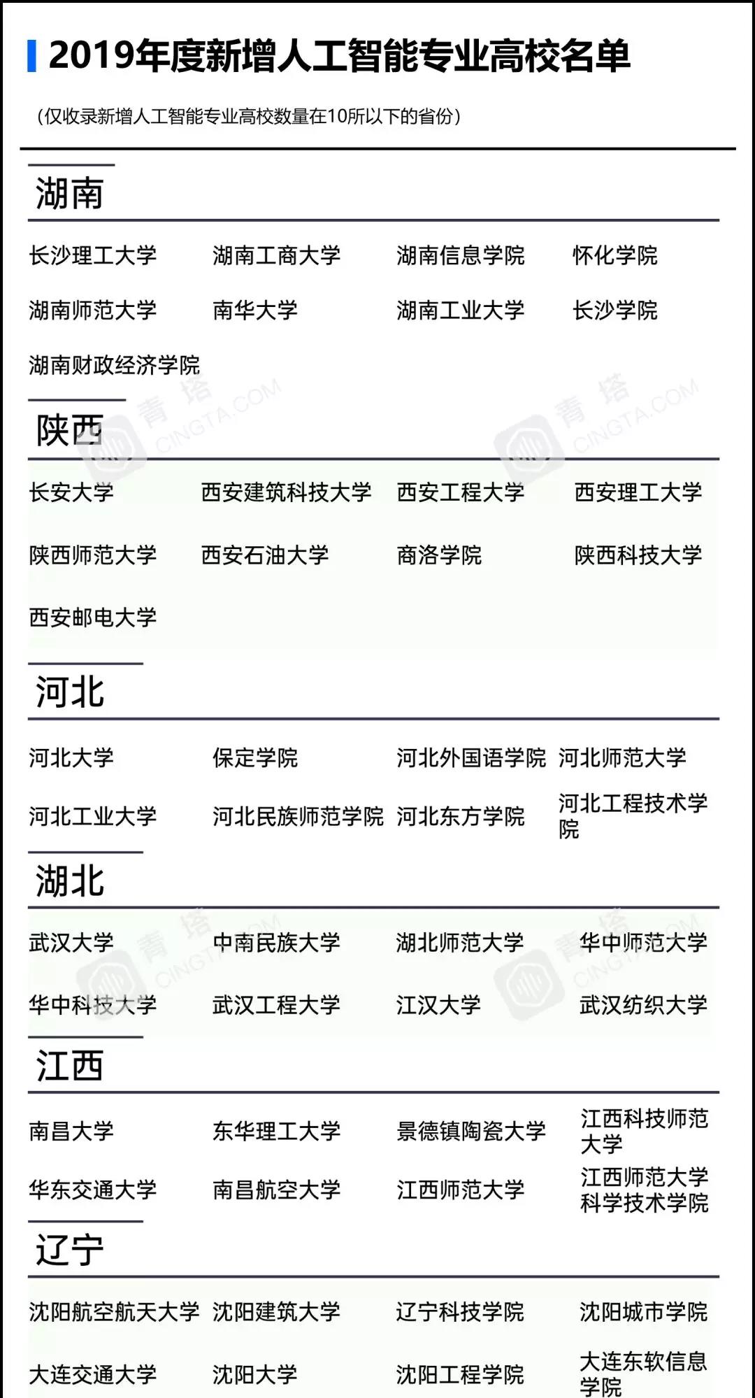 中国人民大学、复旦大学、北京邮电大学、中国农业大学、北京化工大学等180所高校都新增了“人工智能”专业。此外,“智能制造工程”“智能建造”“智能医学工程”“智能感知工程”等智能领域相关专业,也同样是高校的新增备案和新增审批本科专业名单中的热门。