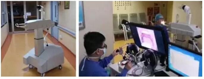 新型智能化咽拭子采样机器人系统由蛇形机械臂、双目内窥镜、无线传输设备和人机交互终端构成。机器人以远程人机协作的方式,可以轻柔、快速地完成咽部组织采样任务。-