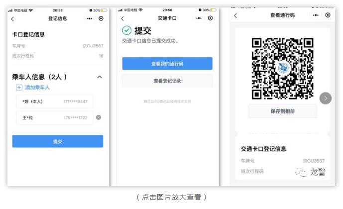 温馨提示:“交通卡口”—“扫码检查”扫描的是司机/乘客的“通行码”,不是健康码。私家车驾乘、大(中)巴车乘客注册“龙江健康码”流程如下:↓↓↓