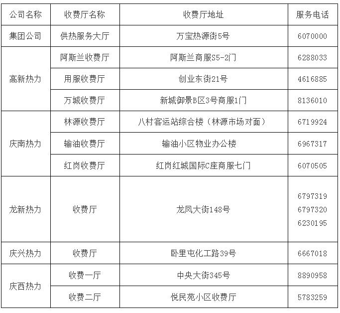 市热力集团工作人员说,3月18日主要开放集团供热服务大厅,服务热线为6070000,3月20日将有序开放集团所属子公司供热服务大厅(地址及电话见表格),并实现所有业务全覆盖。大厅办理业务时间为上午9:00至11:30,下午13:30至16:30,周六周日正常办理。
