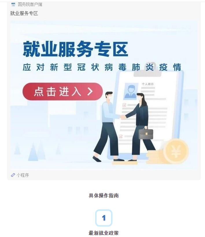 疫情期间有哪些就业扶持?农民工如何返岗复工?失业金去哪里申领?为方便大家及时获知最新就业政策、获取便捷就业服务,我们联合人社部推出疫情应对就业服务专区,在国务院客户端小程序正式上线。
