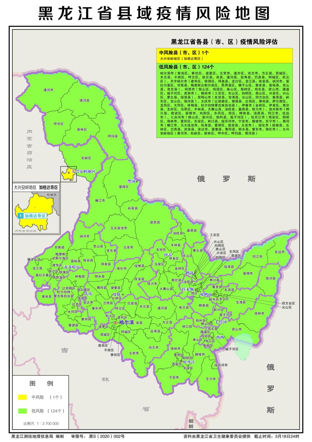 按照《黑龙江省以县域为单元实施分区分级分类精准管控办法》要求,现对全省各县(市、区)风险等级动态调整如下: