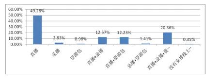 数据显示,全省49.28%的学生反映班级采用直播线上教学方式,20.36%的学生班级采用直播 录播 资源包的方式,12.57%的学生班级采用直播 录播的方式,12.23%的学生班级采用直播 资源包的方式,四种方式分别排在选用在线教学方式的前四位。我省中小学校疫情期间线上教学的内容比较全面,除教授学科知识外(选择教授学科知识的学生数占总数的91.39%),还包括了防疫防控知识(73.59%)、思想品德教育(68.31%)、身心健康教育(75.92%)、劳动教育(36.96%)、艺术教育(38.55%)等方面。