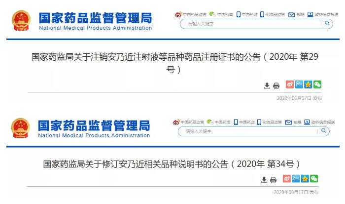 国家药监局关于注销安乃近注射液等品种药品注册证书的公告