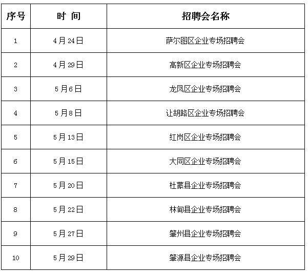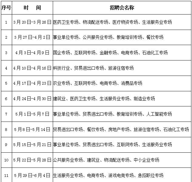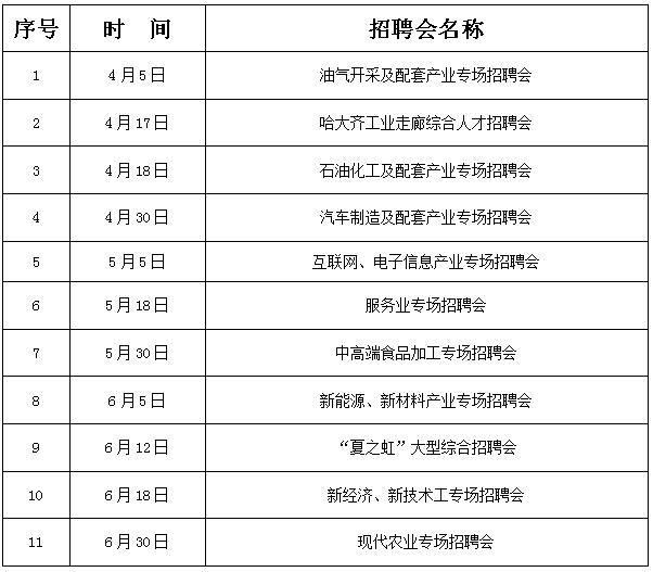 大庆市“百日千万网络招聘专项行动”行业专场招聘会日程安排