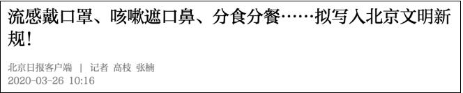 3月26日上午,北京市十五届人大常委会第二十次会议对《北京市文明行为促进条例(草案)》进行二审。《条例》草案二审稿特地增加了与疫情相关的文明行为要求。