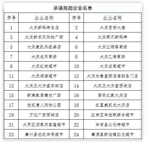目前,我市大型商超已复工复业,为了提升广大消费者的消费热情和信心,全面恢复商业繁荣,由大庆市市场监督管理局倡议,全市24家大型商超自愿参加并作出积极响应,面向全市广大消费者作出以下6项郑重承诺: