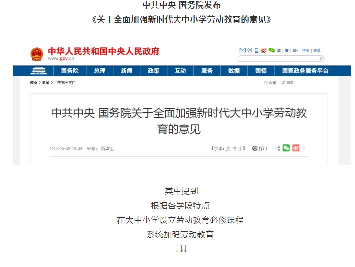 为构建德智体美劳全面培养的教育体系,现就加强新时代大中小学劳动教育提出如下意见。