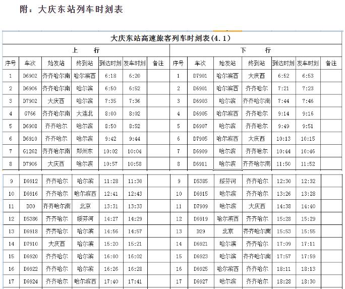 据大庆东站工作人员介绍,4月1日起,大庆东站由原有的32列增加至45列,其中高铁41列,普速4列。