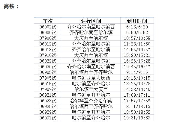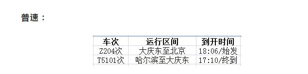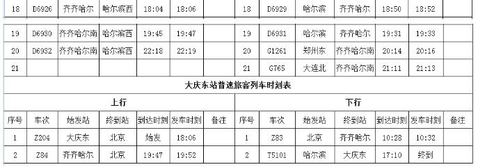 在此次新增加的列车中,大庆东站增加了往返北京方向的列车。有6趟列车停运,具体停运车次为:D9821、D9822、D9823、D9824、D9825、D9826。