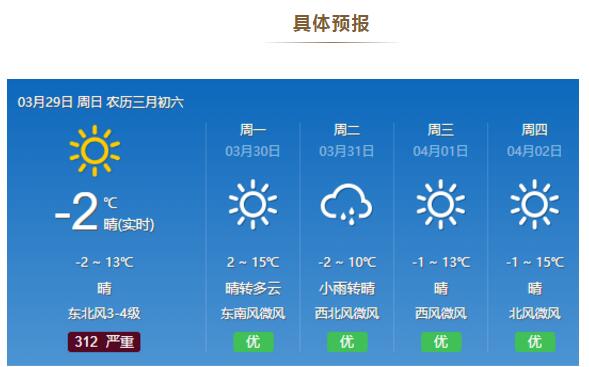 后天白天 晴 最高气温 15℃ 西南风4-5级
