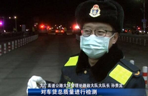 市交警支队公路巡查四大队大队长 吴春雷:“在这里也提醒广大驾驶员,虽然是交通秩序放开了,但是一定要牢记交通安全,不能单纯的追求经济效益,杜绝超载超限的行为发生。”