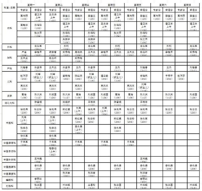 我市多家医院门诊安排信息最新汇总